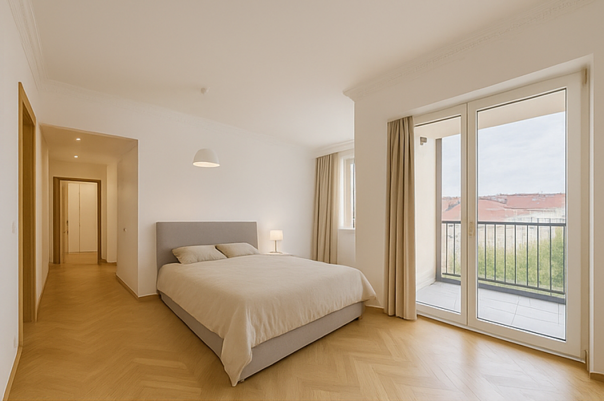 Exkluzivně nabízíme ke koupi výjimečný byt o dispozici 4+kk a celkové výměře 163 m², situovaný v 6. nadzemním podlaží reprezentativní rezidenční budovy s výtahem v jedné z nejvyhledávanějších pražských lokalit – na Královských Vinohradech, přímo v ulici Korunní. Tato nemovitost zaujme nejen svou velikostí, ale především promyšleným dispozičním řešením, kvalitními materiály, nadčasovým interiérem a atmosférou klasického městského bydlení s důrazem na komfort a prostor. Centrálním prvkem bytu je velkoryse pojatý obytný prostor propojený s kuchyňským a jídelním koutem, který díky své otevřenosti a vzdušnosti tvoří ideální zázemí pro rodinný život i společenská setkání. Z obývací části je přímý vstup na balkon orientovaný do klidného vnitrobloku, nabízející nerušený výhled a příjemné posezení. Soukromou část bytu tvoří tři samostatné ložnice – z nichž hlavní ložnice disponuje vlastní en-suite koupelnou. Druhá koupelna je přístupná z chodby, vybavena vanou i sprchovým koutem. Samozřejmostí je i oddělená toaleta pro hosty, praktická komora a prostorná vstupní hala s množstvím úložných prostor. Byt je vybaven dřevěnými podlahami, nadstandardní sanitou, velkoformátovými okny s izolačními skly a moderní kuchyňskou linkou na míru včetně vestavných spotřebičů. V rámci prodeje je k dispozici také sklepní kóje v suterénu domu. Ulice Korunní představuje jednu z nejatraktivnějších adres na pražských Vinohradech – v docházkové vzdálenosti se nachází množství kvalitních kaváren, restaurací, butiků, galerií i drobných služeb. V bezprostředním okolí naleznete i známá kulturní a společenská centra, jako je Vinohradské divadlo, Náměstí Jiřího z Poděbrad s farmářskými trhy či legendární Riegrovy sady s panoramatickým výhledem na Pražský hrad. Perfektní dopravní dostupnost zajišťuje blízkost tramvajových zastávek a stanice metra A – Flora, které spojují lokalitu s historickým centrem Prahy během několika minut. Tento byt představuje ideální volbu pro náročné klienty, kteří hledají nadstandardně prostorné městské bydlení s atmosférou, výbornou dopravní dostupností a veškerou občanskou vybaveností na dosah ruky. Pro více informací či sjednání osobní prohlídky nás neváhejte kontaktovat. Rádi vás nemovitostí osobně provedeme.