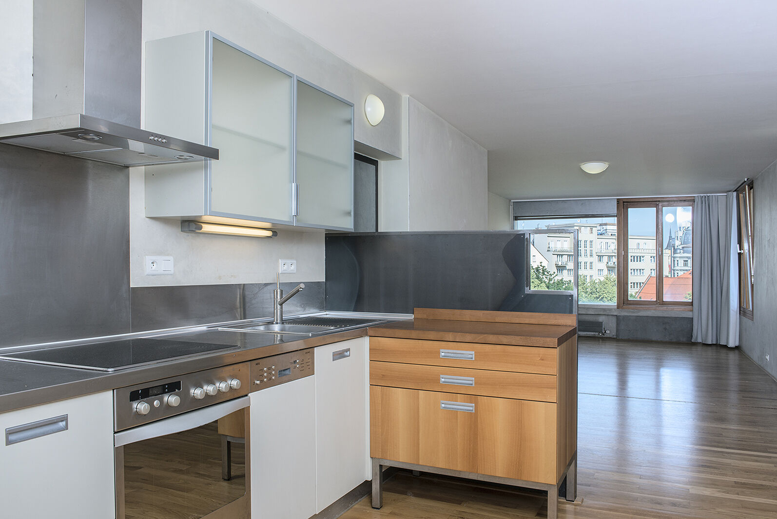 Nabízíme k pronájmu elegantní byt o dispozici 2+kk, který se nachází ve 4. nadzemním podlaží výjimečné rezidence Langhans – historického paláce z konce 19. století, jenž byl kompletně zrekonstruován renomovaným architektonickým studiem Lábus AA. Citlivá přístavba moderních bytových jednotek doplnila původní architekturu o vzdušné a funkční prostory splňující nároky současného bydlení. Rezidence Langhans se nachází v srdci Prahy – se vstupem z ulice Vodičkova a zároveň přímým kontaktem s klidnou Františkánskou zahradou. Díky této poloze nabízí jedinečnou kombinaci vynikající dopravní dostupnosti (tramvaj, metro), kompletní občanské vybavenosti v okolí (Václavské náměstí) a zároveň klidu s výhledy do zeleně i na panorama Pražského hradu. Samotný byt nabízí prostorný obývací pokoj s mírně odděleným kuchyňským koutem, jehož dominantou je výhled do Františkánské zahrady. Ložnice je elegantně propojena s koupelnou obloženou mramorem. Samostatné WC a komora zajišťují maximální komfort a funkčnost. K vybavení domu patří výtah, recepce s 24/7 ostrahou a centrální vytápění. Byt je ideální volbou pro ty, kteří hledají stylové bydlení s důrazem na architekturu, historii i moderní standard v naprosto výjimečné lokalitě.