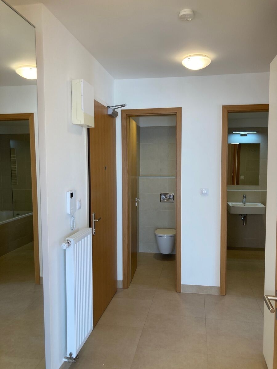 Nabízíme k dlouhodobému pronájmu moderní a prostorný byt o dispozici 2+kk s užitnou plochou 65,5 m², který se nachází v 5. nadzemním podlaží novostavby Jubileum House na adrese Komunardů 20, Praha 7 – Holešovice. K bytu náleží balkon orientovaný do klidného vnitrobloku, sklepní kóje a možnost pronájmu garážového stání. Byt je ideální pro jednotlivce či pár, kteří hledají nadstandardní bydlení v dynamicky se rozvíjející lokalitě s výbornou dostupností a veškerou občanskou vybaveností. Dispozičně je byt řešen velmi prakticky. Prostorný obývací pokoj s kuchyňským koutem nabízí dostatek denního světla a přímý vstup na balkon. Kuchyňská linka je vyhotovena na míru a vybavena kvalitními vestavěnými spotřebiči. Ložnice je orientována do tichého vnitrobloku a nabízí dostatek úložného prostoru. Součástí bytu je koupelna s vanou a toaletou, stejně jako vstupní hala s vestavěnou šatní skříní. Komfort bydlení zvyšuje klimatizace, která zajistí příjemné teploty i během letních měsíců. K bytu náleží sklepní kóje, která je již zahrnuta v ceně nájmu. Garážové stání je k dispozici za měsíční poplatek. Rezidence Jubileum House poskytuje svým obyvatelům reprezentativní vstupní prostory, podzemní garáže, vysokorychlostní internet, privátní zahradu s fontánou a upravený vnitroblok s relaxační zelení. Lokalita Prahy 7 – Holešovic je vyhledávaná pro svou kombinaci městského života, kultury a zeleně. V okolí naleznete galerie (např. DOX), kulturní centra (La Fabrika), stylové kavárny, coworkingová centra, restaurace a obchody. V docházkové vzdálenosti se nachází stanice metra C – Nádraží Holešovice a Vltavská, několik tramvajových linek a cyklostezky. V případě zájmu o více informací nebo prohlídku nás neváhejte kontaktovat.