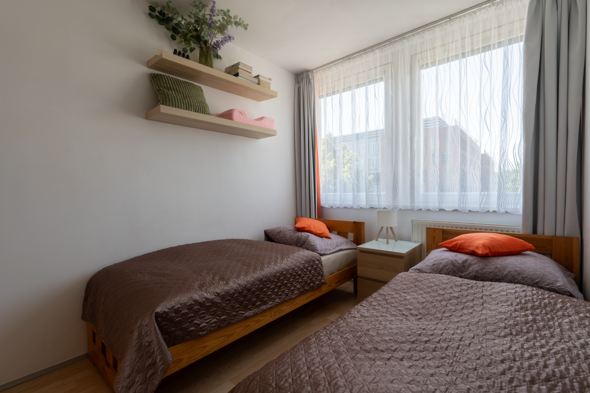 Nabízíme k pronájmu stylově zařízený byt 3+kk o užitné ploše 42 m², umístěný ve 2. nadzemním podlaží rezidenční budovy v žádané lokalitě Prahy 8 – Karlín, ulice Molákova. Byt je součástí moderního projektu navrženého s důrazem na kvalitu, funkčnost a komfort městského života. Dispozice bytu zahrnuje dvě samostatné ložnice a centrální obývací prostor s plně vybavenou kuchyňskou linkou. K dispozici je lednice s mrazákem, trouba, myčka, kávovar i kompletní sada nádobí – byt je tak připraven k okamžitému nastěhování bez nutnosti dalších investic. Koupelna je vybavena vanou a toaletou, nechybí ani přípojka na pračku. Celý byt je klimatizovaný, což zajišťuje příjemné prostředí i během horkých letních dnů. K bytu náleží komora na chodbě (1,5 m²) a po dohodě je možné využívat také sklepní kóji. Rezidenti mají navíc k dispozici střešní terasu s výhledem, fitness centrum přímo v budově a společnou prádelnu. Byt je volný ihned a je ideální pro jednotlivce nebo pár, kteří hledají moderní, pohodlné bydlení v jedné z nejatraktivnějších čtvrtí Prahy. V blízkosti se nachází stanice metra Invalidovna, obchody, restaurace i parky. Doporučujeme osobní prohlídku.